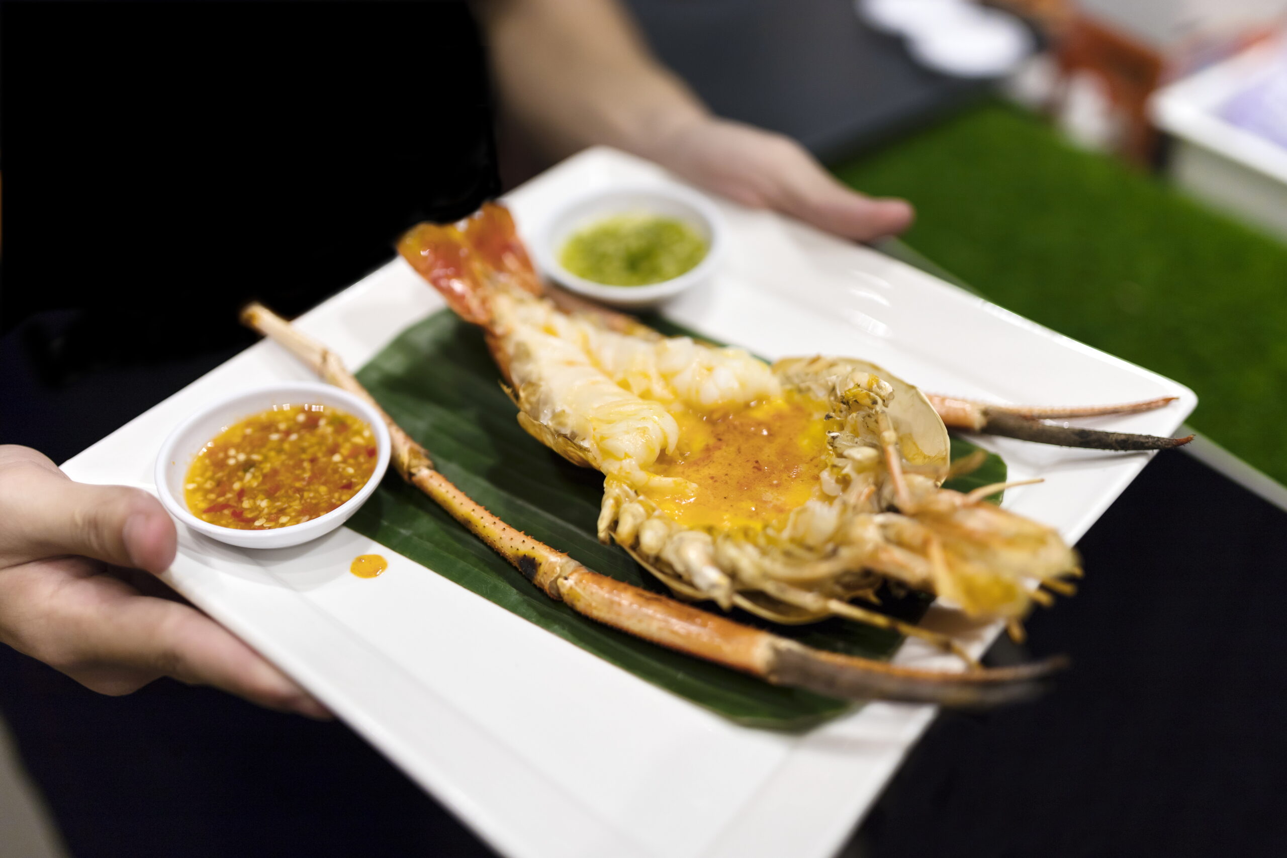 アユタヤの名物グルメといえば、真っ先に思い浮かぶのが「クンパオ(焼き川エビ)」です。巨大川エビを炭火でじっくり焼いた香ばしい香りは、遠くからでも食欲をそそります。エビを見る前からお腹が鳴ってしまうほど!
