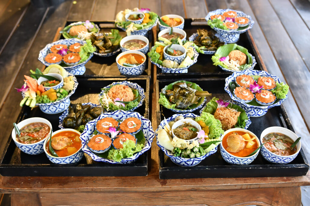 宮廷や貴族の家ごとに少しずつ味付けや調理法に違いはありましたが、基本的な伝統は王宮から広まりました。これは当時の文化や美意識を反映した、タイを代表する貴重な料理文化です。